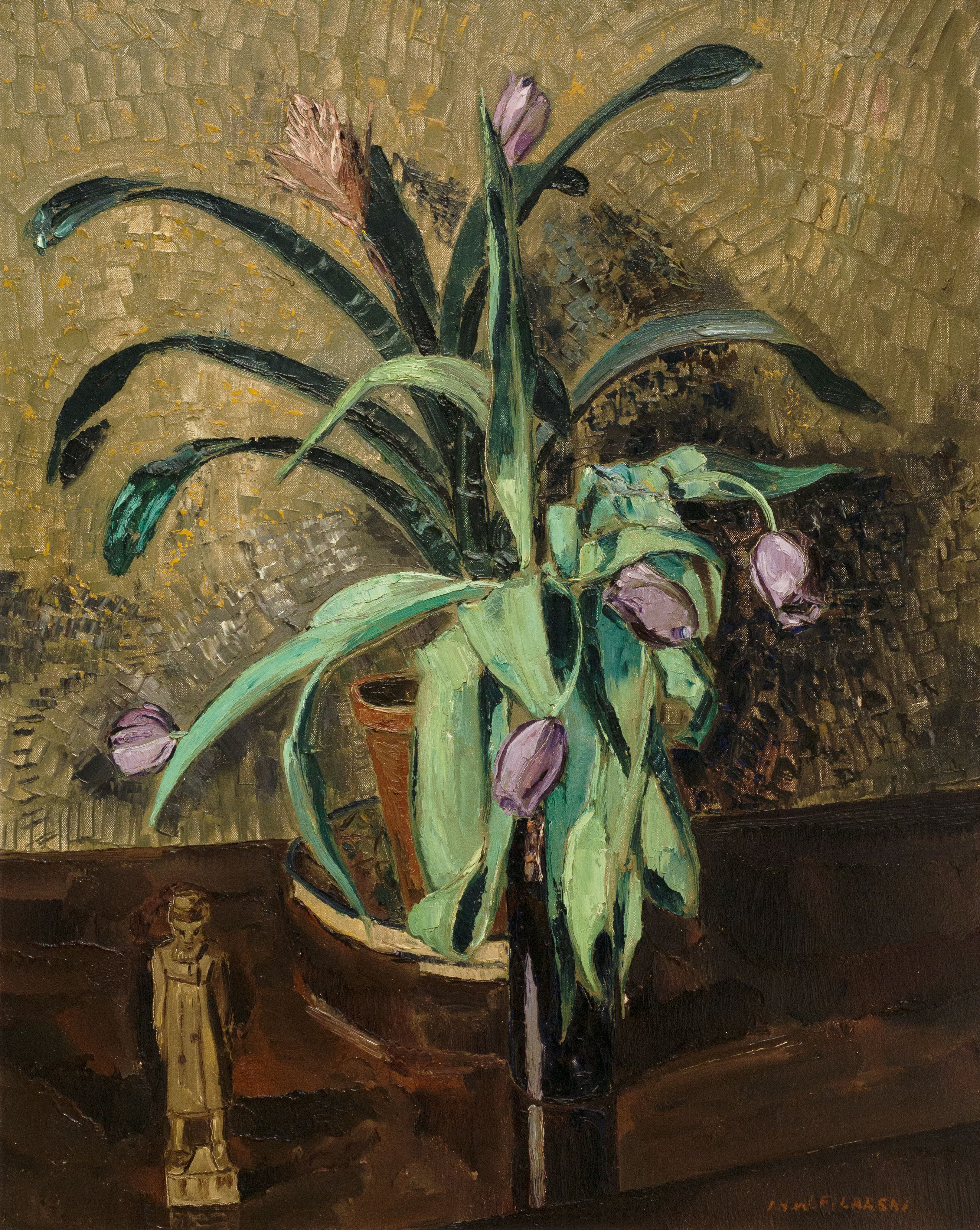 The title of Renée Smithuis' book on Filarski is: Wandering Painter of the Bergen School. Herein lies succinctly the elements that typify Filarski. He was never in one place for long, always looking for new challenges and inspirations with Bergen aan Zee as his base of operations. He was educated at the Kunstnijverheidsschool Quellinus in Amsterdam where he met Dirk Smorenberg, among others, and from which a lifelong friendship developed. Various patrons enabled Filarski to lead a free artistic existence, place of residence remained Bergen. Here, around 1910, an artists' colony arose, including Leo Gestel and Else Berg. Filarski previously painted in colorful luminism, experimented with a new expressionism, went back to more somber colors only to revisit detail and color. Landscapes and still lifes are favorite subjects. Switzerland, Italy, France, Norway and, of course, Holland are the countries where he painted. He participated in dozens of exhibitions and was a member of Het St Lucas guild. He left an extensive oeuvre. His work can be found in several Dutch museums as well as in many private collections.