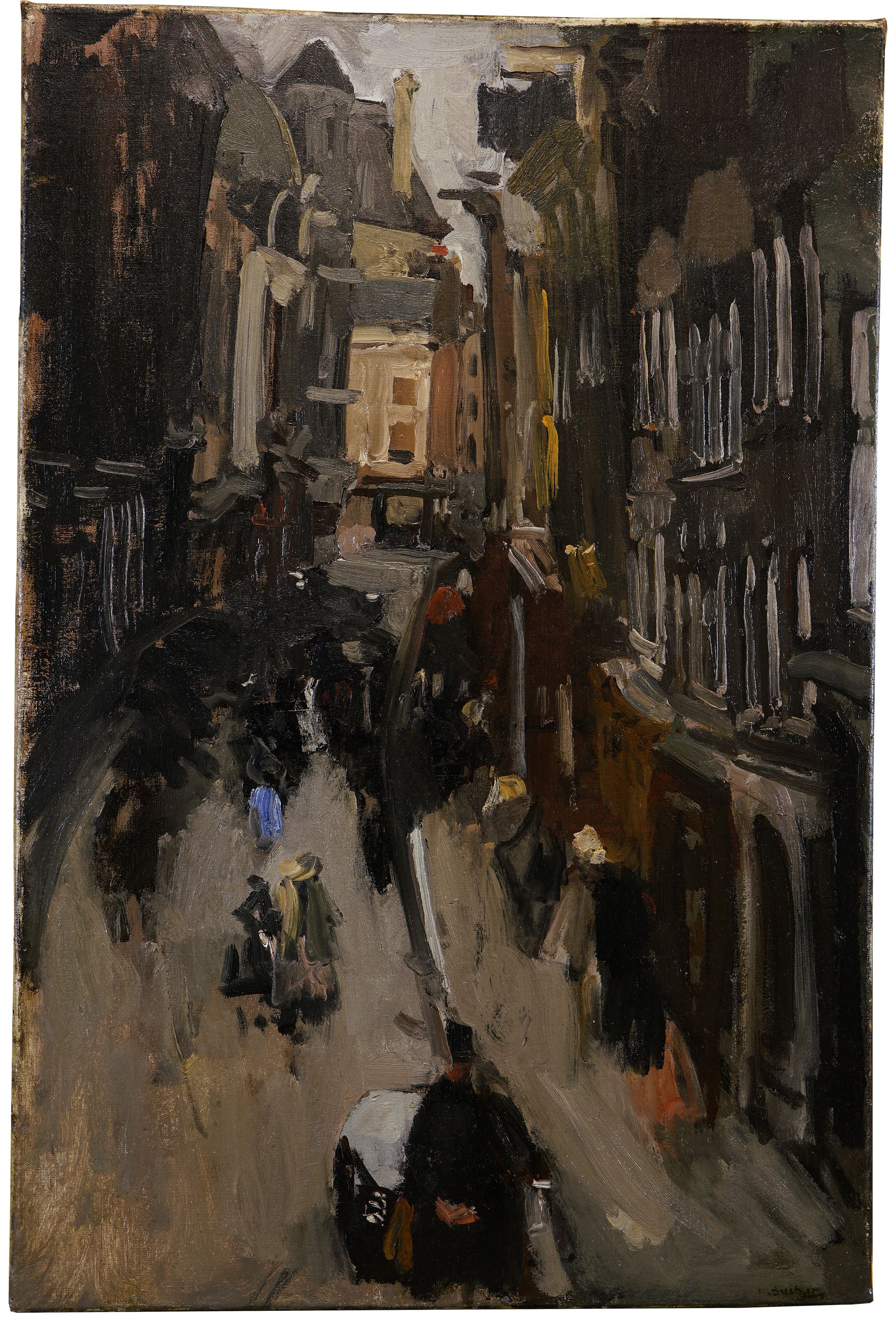 Breitner often roamed the streets with his sketchbook and camera to capture the daily lives of construction workers, laborers, maids and playing children. With powerful brushstrokes, he captured what he saw: a fleeting moment, a fragment in time. To convey an impression was painting at its purest; the eye does the rest. Bustling city life would become a recurring subject in his oeuvre. After 1914, he painted less and hardly ever took photographs. He died on June 5, 1923, behind his easel, palette and brush in hand.
