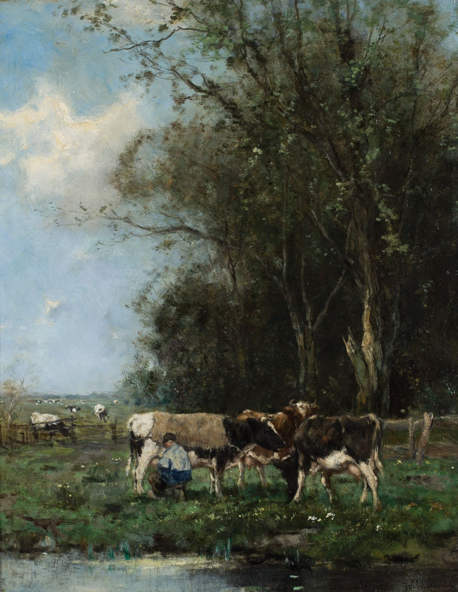 Scherrewitz was the son of an Amsterdam stockbroker and was expected to work in this trade as well. His loved painting, however, and he took lessons from George Jan Hendrik Poggenbeek. He moved to Laren and Hilversum in 1898. He preferred to paint forest landscapes such as in Brabant, the Veluwezoom and Lage Vuursche. He also painted a lot on the North Sea coast, always in the style of the Hague School, with autumn colors. In his work you often see shepherds with sheep, fishermen with their barges, carts and horses, and farmers with cows: simple people, lovingly painted. He sold his work especially in the United States, England and Scotland, where the work of the Hague School was in great demand. Accordingly, Scherrewitz made little effort to exhibit or sell in his own country as well, in part because interest in the Hague School had bottomed out here after 1914. Scherrewitz died in 1951, aged 83. You can see his work at the Rijksmuseum Twenthe in Enschede.