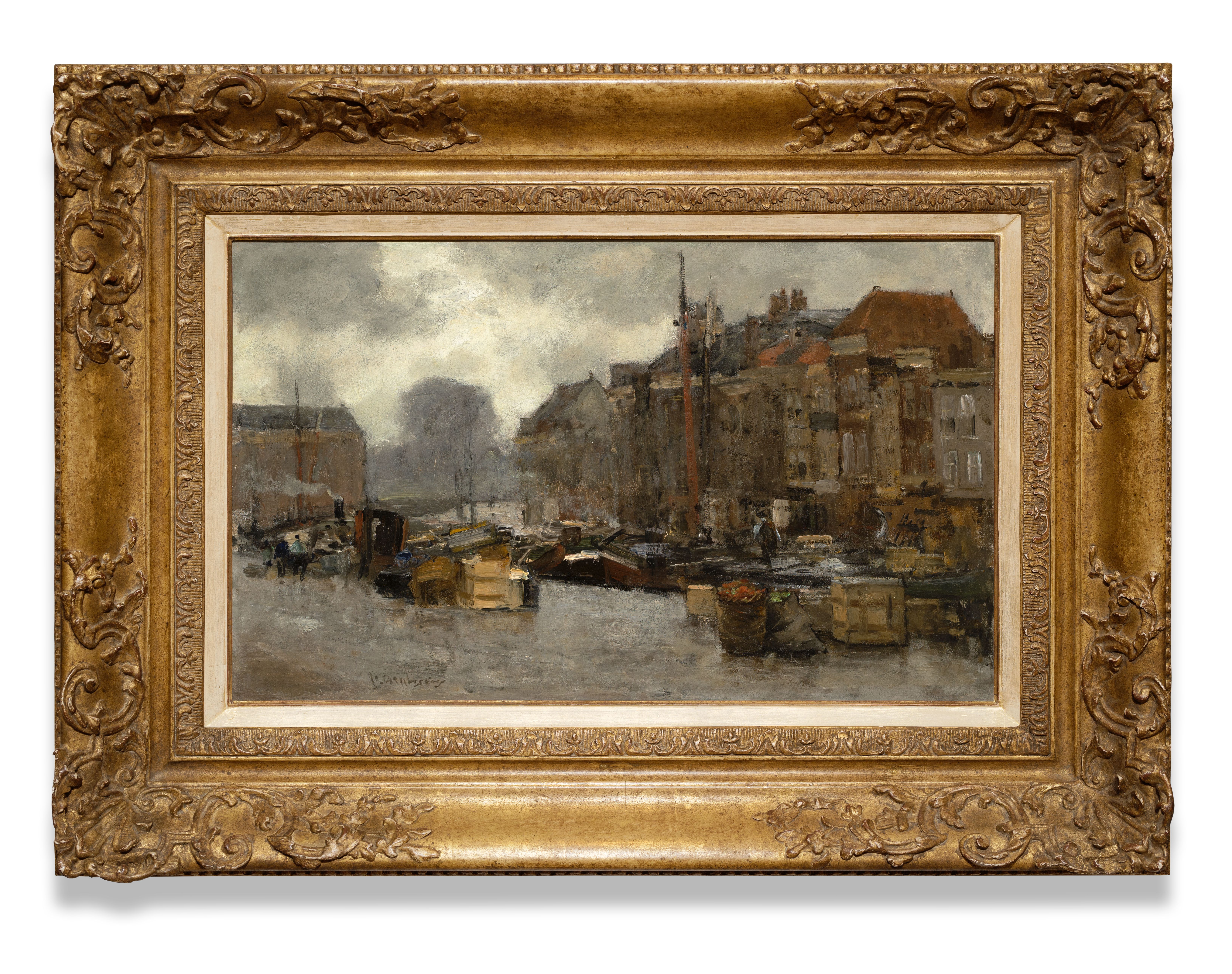 Floris Arntzenius, “Flor” voor zijn vrienden bracht de eerste tien jaren van zijn leven door in het voormalige Nederlands-Indië. Vervolgens verhuisde hij naar een oom en tante in Amsterdam. In de jaren 1881- 1888 studeerde hij- met enige onderbreking- aan de Rijksacademie in Amsterdam, waar destijds August Allebé (1838-1927) de scepter zwaaide en Flor zijn schilders vrienden George Breitner (1857-1923), Isaac Israels (1865-1914), Jan Veth (1864- 1925) en Willem Witsen (1860-1923) leerde kennen. Arntzenius vervolgde zijn opleiding aan de Antwerpse academie, keerde weer terug naar Amsterdam waar hij zich in 1887 opnieuw bij de Rijksacademie aanmeldde en in 1888 zijn opleiding als voltooid beschouwde. Daarna volgde een periode van reizen; zo was hij o.a. in 1890 in New York. In 1892 vestigde hij zich definitief in Den Haag, waar hij tot zijn overlijden in 1925 zou blijven wonen en werken. Hij werd lid van de Amsterdamse kunstenaarsvereniging Arti et Amicitiae en in Den Haag van Pulchri Studio. In 1896 aanvaarde hij het lidmaatschap van de Hollandsche Teekenmaatschappij, waarvan hij een prominent medewerker zou worden. Passend in zijn tijd aquarelleerde Arntzenius en blonk daarin ook uit. Tot aan zijn dood zou Arntzenius trouw blijven aan zijn onderwerpen en schilderstijl. De nieuwe richtingen die sinds het begin van de 20ste eeuw kunstenaars als Kees van Dongen (1877-1968), Jan Sluijters (1881-1957) en Leo Gestel (1881-1941) insloegen, inspireerden Arntzenius niet tot navolging en hij maakte daar ook geen probleem van. In 1920 vulde hij op verzoek van de Larense kunsthandel N. van Harpen een vragenlijst in onder andere over zijn kunstrichting. Laconiek antwoordde hij: ”Volgens deze tijd is mijn kunstrichting niet de goede”. De kwaliteit van zijn werk, de subtiele sfeer van zijn straattaferelen zijn echter tijdloos; de “straatjes” weten nog altijd te boeien en vormen een gewild verzamelobject voor de fijnproevers.