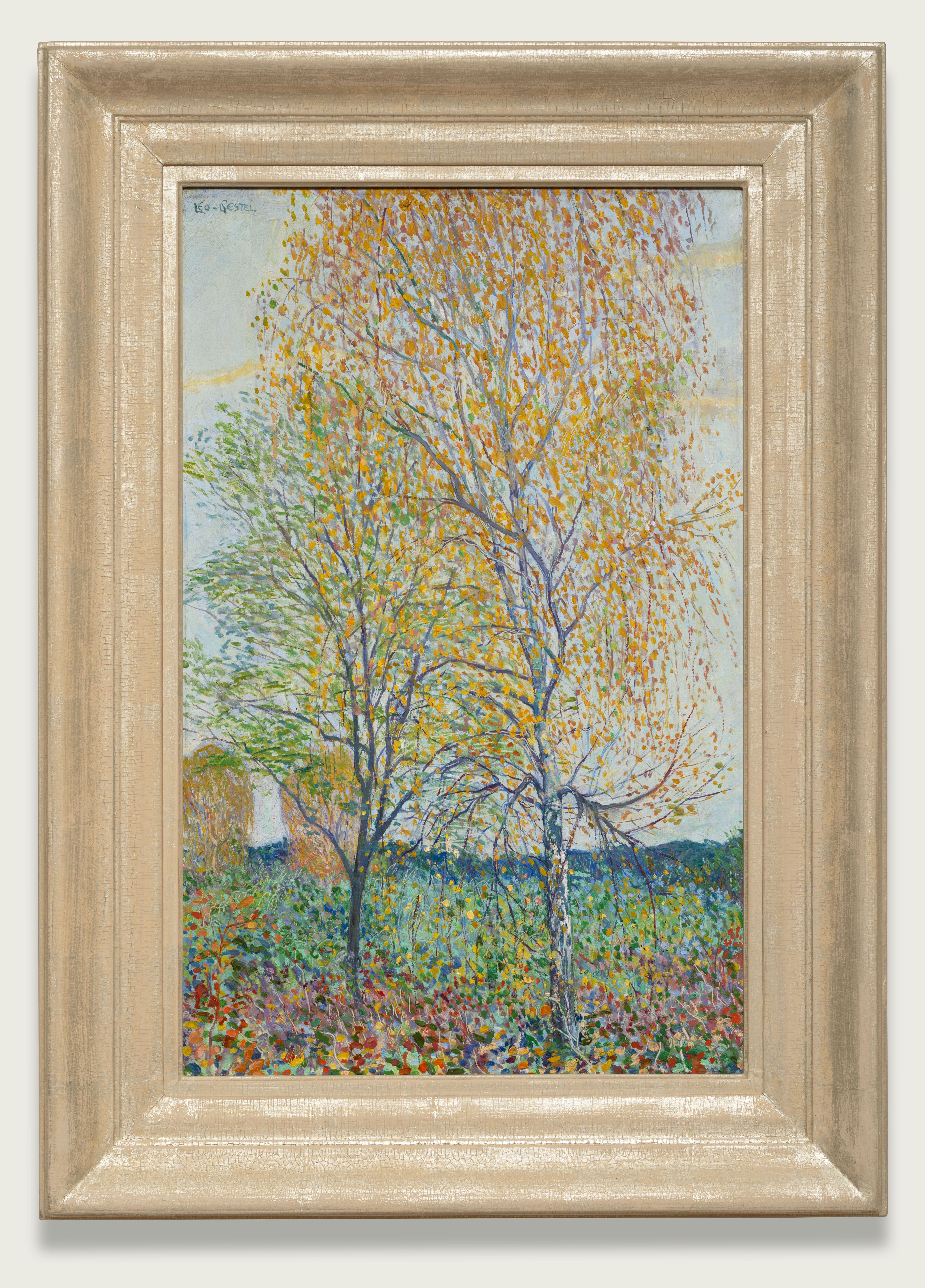 Dit schitterende herfstlandschap maakte Leo Gestel in de herfst van 1909, in een roerige periode in de Nederlandse kunst, toen nieuwe ontwikkelingen elkaar razendsnel opvolgden. In deze periode was Gestel een van de gangmakers van de moderne beweging in Nederland. Samen met zijn collega’s Jan Sluijters en Piet Mondriaan liep hij voorop in experimenten die de kunst voor altijd zouden veranderen. In 1909 hield hij zich, geïnspireerd door de Franse pointillisten, bezig met het ontleden van de kleur. In navolging van de Franse schilder Seurat zette hij de verf in contrasterende stippen kleur op het doek, met de bedoeling dat de kleuren zich pas zouden mengen in het oog van de beschouwer en een sterkere sensatie van het licht teweeg zouden brengen. In 1905 was er in Amsterdam voor het eerst een grote tentoonstelling georganiseerd van het werk van Vincent van Gogh, 15 jaar na zijn dood. Ook dit was een sensatie voor de moderne schilders in Nederland. Daarbij kwam nog de invloed van de Parijse fauvisten, die de Hollandse schilders een vrijer gebruik van kleur hadden geleerd.