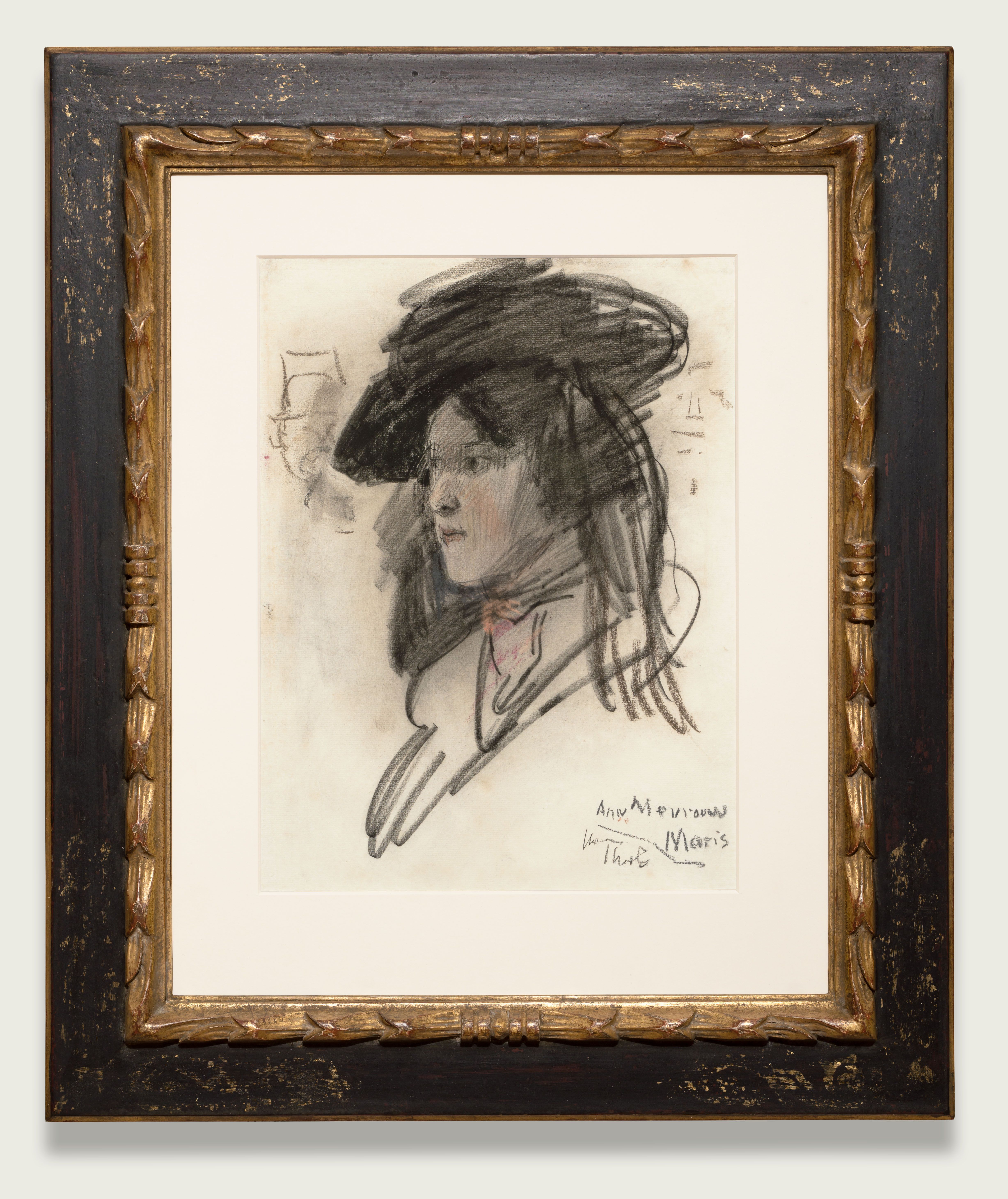 Zwart krijt/pastel/papier: 35 x 26 cm