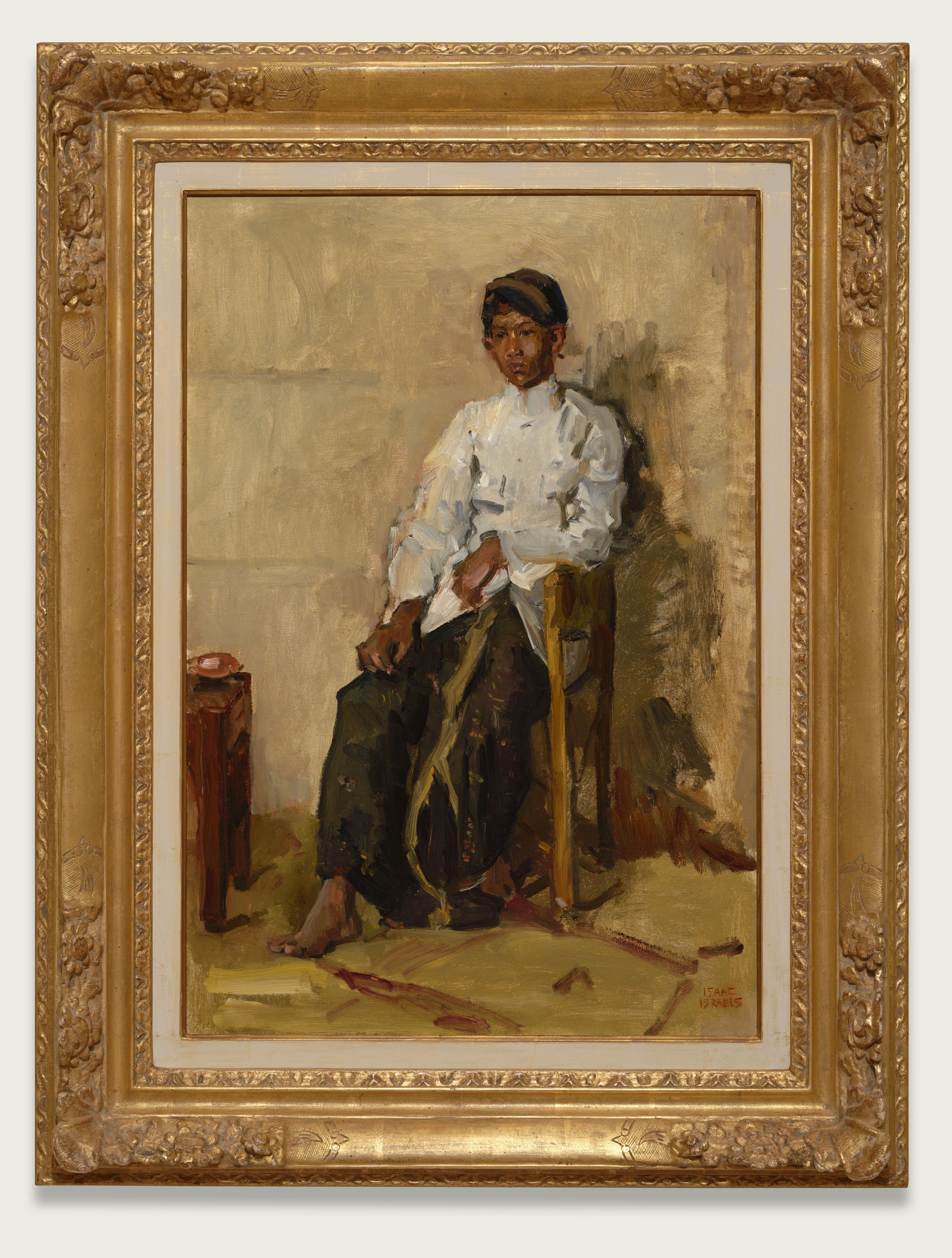 Één van die studenten is hier door Israels in een serene, serieuze, in zichzelf gekeerde pose afgebeeld. Hij zit op een rotanstoel, die we ook op andere Indische portretten van Israels herkennen. Veel aandacht besteedde hij aan het gezicht, dat hij met brede verfstreken zorgvuldig modelleerde en waaraan we de grote virtuositeit van Israels kunnen herkennen. Een manier van schilderen die door zijn Javaanse vriend Jodjana niet werd begrepen. Die schreef dat hij niet inzag hoe: “bv. een gezicht v/e mens uit een samenstelling van kleuren en nuances hiervan kan worden opgebouwd – omdat ik deze factoren in de realiteit ook niet zag. Het gezicht van een Javaan bijv. zou ik alleen hebben gekleurd met ‘bruin’. Door omgang met Isaac Israels heb ik pas kleurcombinaties en kleureffecten leren kennen en mijn gevoel daarvoor ontwikkeld.”