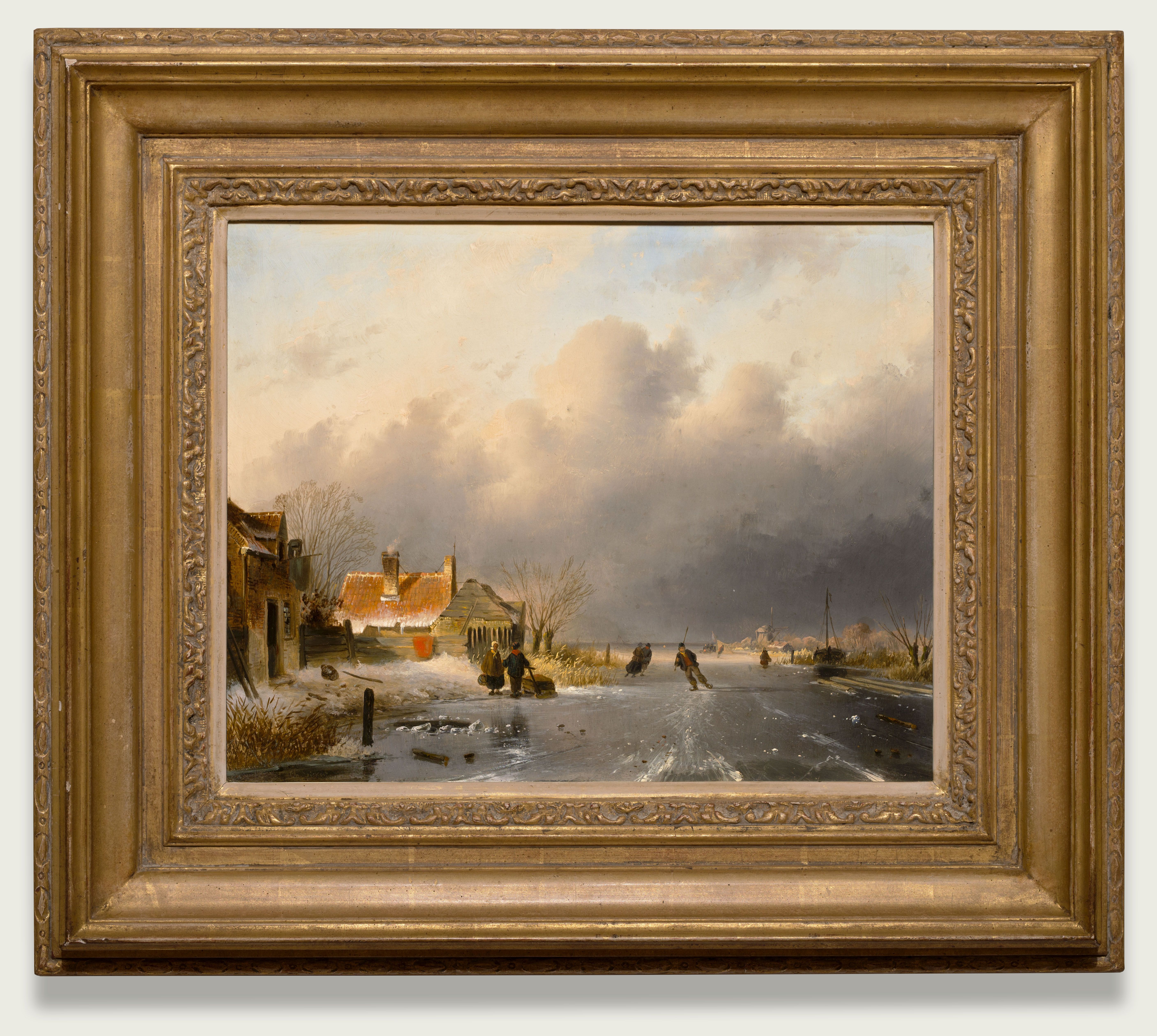 A. Schelfhout (1787 - 1870) had grote invloed op de ontwikkeling van Leickert als schilder.Eerder was hij in de leer geweest bij de vroeg overleden Wijnand Nuijen. Leickert bekwaamde zich na zijn leertijd in het schilderen van winterlandschappen, stads- en strandgezichten. Een vergelijkbaar schilderij bevindt zich in de collectie Museum Schmidt van Gelder, Antwerpen en in de Lexicon Beeldende Kunstenaars 1750 -1950 door P.A. Scheen (afb. 253).