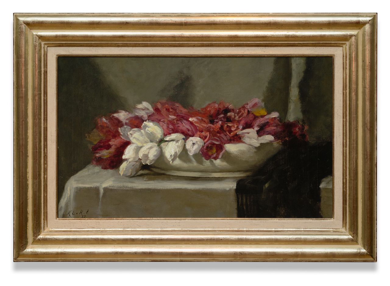 Marie was 22 when she took painting lessons from George Jan Hendrik Poggenbeek. He taught her still life painting and helped her with the rendering of form, light and shadow, color tones and so forth. Following this, she attends the Rijksacademie in Amsterdam. There she got to know Jo Strumff, Lizzy Assingh, Nelly Bodenheim, Ans van den Berg, Coba Ritsema, Jacoba Surie and Betsy Westendorp-Osieck and together they formed "The Amsterdam Joffers" since 1912. She attended Allebé's painting class in 1896, and suddenly had to leave the Academy for health reasons. When her health improved, she rented a studio near the Nieuwmarkt in Amsterdam where she was taught by the painter-etcher M.W. van der Valk. She made a study trip to Prague, Rome and the south of France. After her trip, she returns to live with her parents in Apeldoorn, where she kept her studio. She stays there until 1917 and then returns to Amsterdam permanently. She becomes a member of Arti et Amicitae, St. Lucas and Pulchri Studio in The Hague. Marie paints mostly still lifes, which become increasingly bold in color. Her refined way of painting and her technical perfection are unsurpassed. She has participated in a number of exhibitions at Museum Boymans van Beuningen in Rotterdam, Centraal Museum in Utrecht, Singer Museum in Laren and the Hague and Rijksmuseum, among others. She has also exhibited in Vienna, Venice, Barcelona and Edinburgh. Marie van Regteren Altena died in Amsterdam on July 6, 1958.