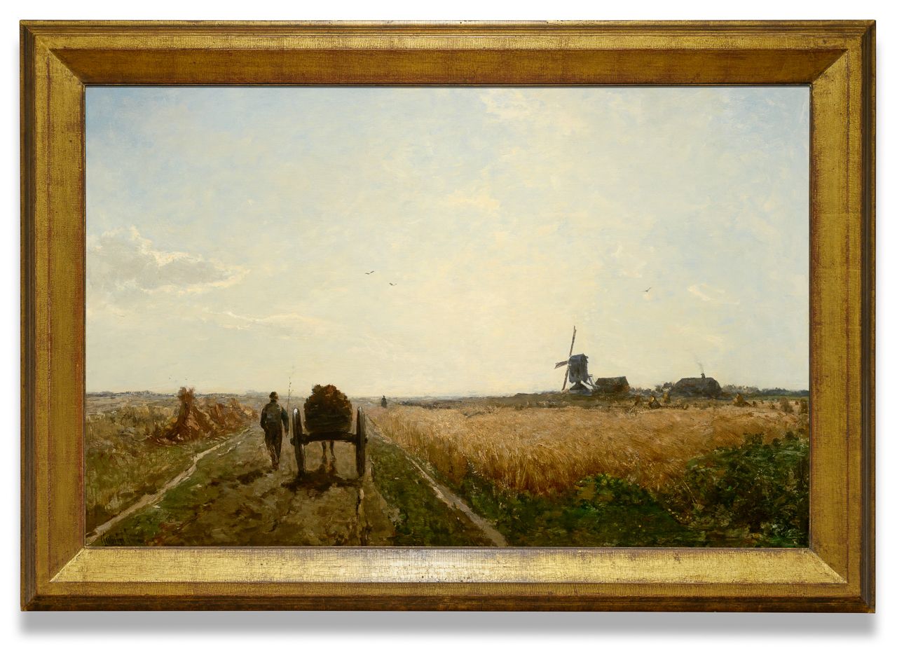 Paul Gabriel is pre-eminently characterized as the portraitist of the Dutch polder. He learned to paint en-plein-air in Oosterbeek, where he spent some time with J.W. Bilders, among others. In 1860 he moved to Brussels where he became friends with Willem Roelofs, the leading landscape painter at the time. From Brussels he regularly returned to paint the Dutch ponds and polders. The time of day (preferably early in the morning) and the corresponding light are important elements in Gabriel's work. In doing so, he uses more than just the nuances of gray so beloved of his contemporaries and was thus called the colorist of the Hague School. Mesdag calls it "Gabriel's morning poetry." Until the 1980s, Gabriel painted mainly in the area around Kortenhoef, Abcoude and Vreeland. After moving to Scheveningen in 1884, he works in the area around The Hague. Gabriel belongs to one of the leading painters of the Hague School. Almost all important museums own work by him.