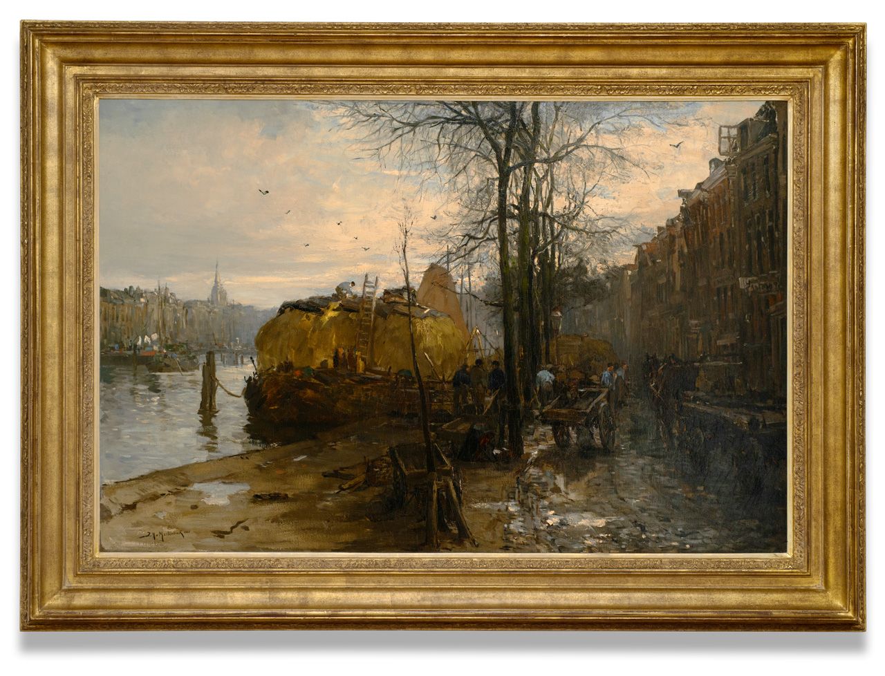 Johan Hendrik van Mastenbroek, sometimes called the Breitner of Rotterdam by some, devoted very many paintings and watercolors to the city on the Maas. The works of art all testify to Van Mastenbroek's great interest in the changing of the seasons and their influence on the people and their activities in the city. Like Breitner, Van Mastenbroek chose to depict workers behind tug carts, passers-by, horse and carriage on the quays, sailing or moored barges, harbor scenes etcetera. Van Mastenbroek was concerned with depicting the atmosphere of the city at a particular time of year and showing how its inhabitants moved around the city. A realistic depiction of the surroundings was important in this regard. It now gives us a wonderful insight into old Rotterdam.